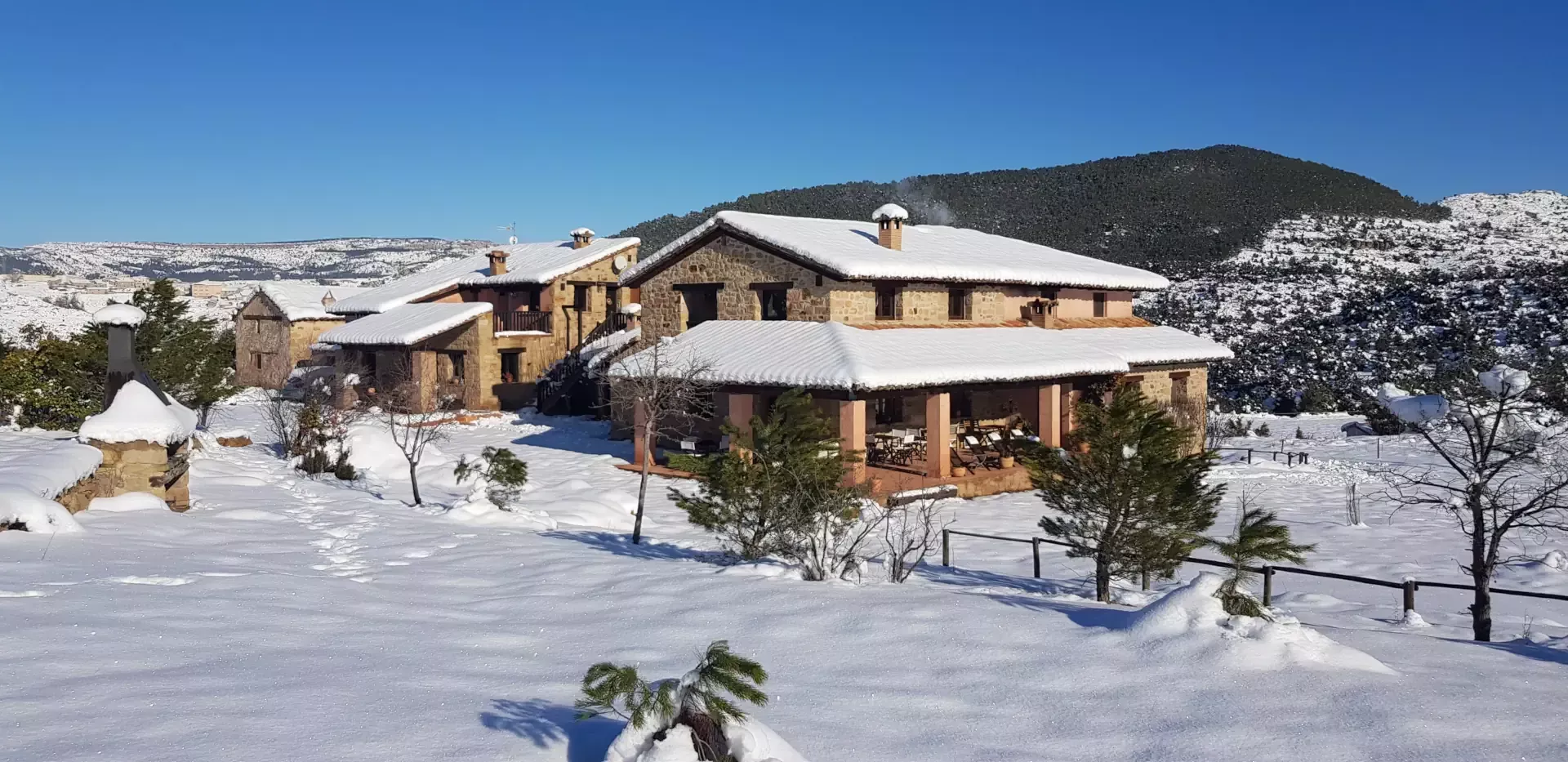 Además, hemos utilizado materiales propios del terreno, como los típicos muros de piedra, suelos de barro cocido artesanal, yeso de Albarracín y cubiertas de madera , para conseguir que la masía se encontrase integrada en el paisaje y mantuviese las características originales.